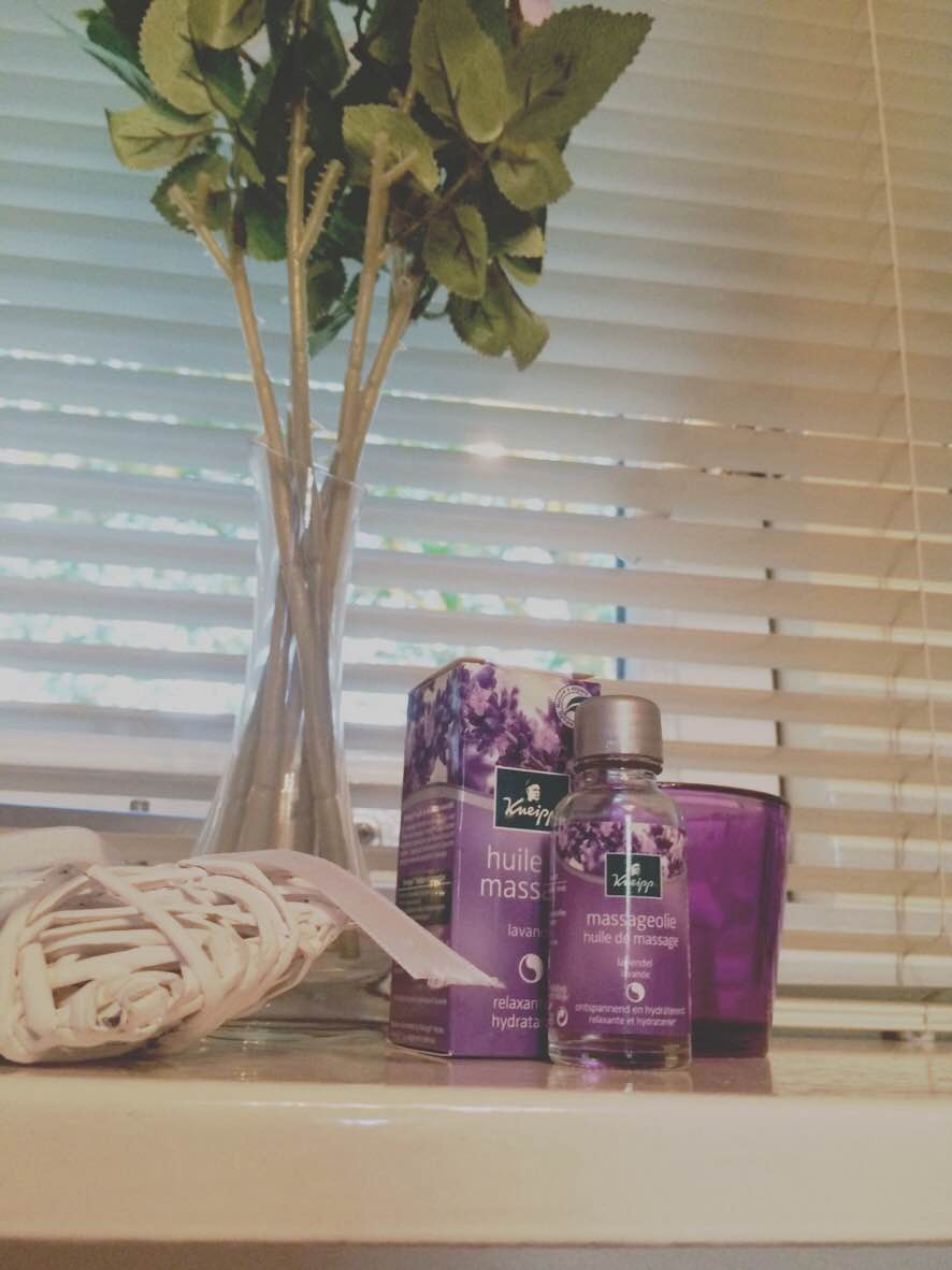 De massageolie ruikt ook best wel sterk naar lavendel, maar ook iets meer creamy net als de bodylotion. Iets meer toegankelijk voor mensen die minder van lavendel houden dus. Ik heb de massageolie aangebracht op de plekjes op mijn huid die altijd wat droger zijn, zoals mijn elle bogen en knieën. Het duurt iets langer voor deze intrekt wat op zich logisch is wat het voedt ook meer als de bodylotion, maar ik vond hem voor een olie nog best snel intrekken. Deze heb ik trouwens na de bodylotion aangebracht, dus dat betekend nog meer lavendel, wat ik persoonlijk echt te veel vond. De olie is voorderest basic en prima.